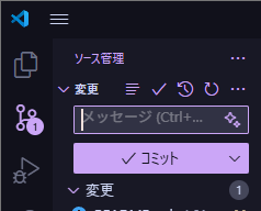 VS Codeの「ソース管理」のメッセージの右横にある「Copilotを使用してコミットメッセージを生成する」ボタンが勝手に表れた。